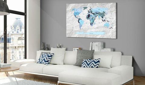 Decorative pinboard "Blue Pilgrimages [Cork Map]" is a product for people searching for original wall decorations. Thanks to ecological material and interesting design, the ordinary cork board changes into a stylish decoration, which you could use in different ways. You can pin your notes and photos and mark the visited places on the map. Decorative pinboard "Blue Pilgrimages [Cork Map]" is much lighter from the traditional wall decorations. Thanks to that the decorative cork boards can be hung anywhere in your apartment or office. The canvas print is applied on the cork board. Print is characterized by bold colors and reflects even the finest details. Stick in and pin your notes and create your own individual design on your wall!