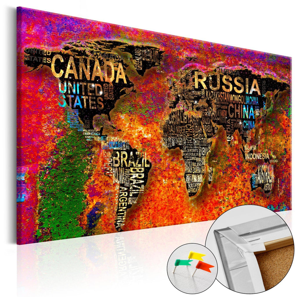 Decorative pinboard "Impressive World [Cork Map]" is a product for people searching for original wall decorations. Thanks to ecological material and interesting design, the ordinary cork board changes into a stylish decoration, which you could use in different ways. You can pin your notes and photos and mark the visited places on the map. Decorative pinboard "Impressive World [Cork Map]" is much lighter from the traditional wall decorations. Thanks to that the decorative cork boards can be hung anywhere in your apartment or office. The canvas print is applied on the cork board. Print is characterized by bold colors and reflects even the finest details. Stick in and pin your notes and create your own individual design on your wall!