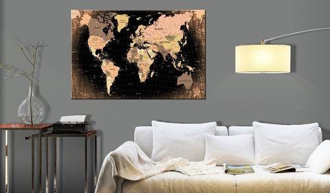 Decorative pinboard "Planet Earth [Cork Map]" is a product for people searching for original wall decorations. Thanks to ecological material and interesting design, the ordinary cork board changes into a stylish decoration, which you could use in different ways. You can pin your notes and photos and mark the visited places on the map. Decorative pinboard "Planet Earth [Cork Map]" is much lighter from the traditional wall decorations. Thanks to that the decorative cork boards can be hung anywhere in your apartment or office. The canvas print is applied on the cork board. Print is characterized by bold colors and reflects even the finest details. Stick in and pin your notes and create your own individual design on your wall!