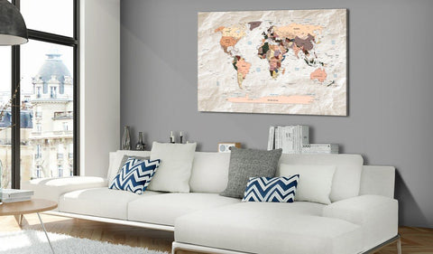 Decorative pinboard "Stony Oceans [Cork Map]" is a product for people searching for original wall decorations. Thanks to ecological material and interesting design, the ordinary cork board changes into a stylish decoration, which you could use in different ways. You can pin your notes and photos and mark the visited places on the map. Decorative pinboard "Stony Oceans [Cork Map]" is much lighter from the traditional wall decorations. Thanks to that the decorative cork boards can be hung anywhere in your apartment or office. The canvas print is applied on the cork board. Print is characterized by bold colors and reflects even the finest details. Stick in and pin your notes and create your own individual design on your wall!