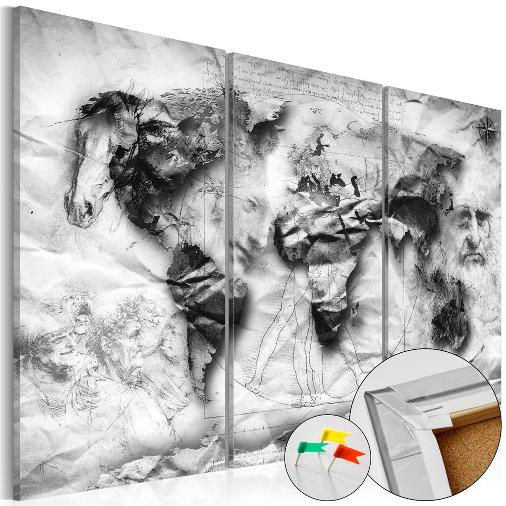 Decorative pinboard "World's Design [Cork Map]" is a product for people searching for original wall decorations. Thanks to ecological material and interesting design, the ordinary cork board changes into a stylish decoration, which you could use in different ways. You can pin your notes and photos and mark the visited places on the map. Decorative pinboard "World's Design [Cork Map]" is much lighter from the traditional wall decorations. Thanks to that the decorative cork boards can be hung anywhere in your apartment or office. The canvas print is applied on the cork board. Print is characterized by bold colors and reflects even the finest details. Stick in and pin your notes and create your own individual design on your wall!