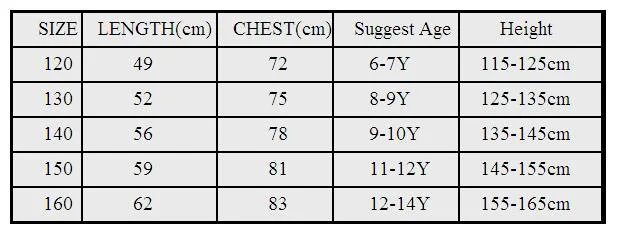 Size: 120 cm-160 cm, 6-7-8-9-10-11-12-13-14