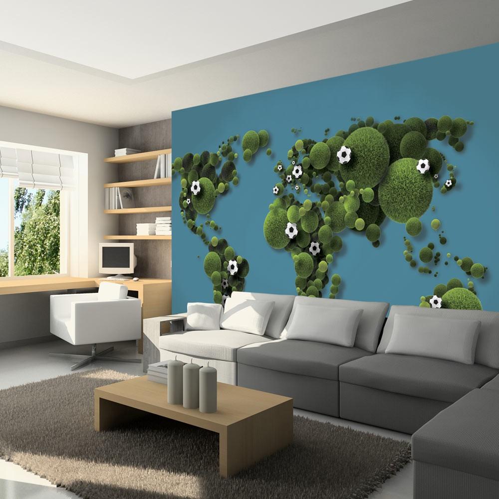Resistant, water-rejecting and scratch-proof fleece wallpaper "A World of football". Wallpaper "A World of football" with the inspiring motive will be an effective eye-catch for each interior. Fleece wallpapers are attached to the wall with special glue. They can be installed in each room even in the bath or in the kitchen. Fleece wallpaper, halfmatte coating. 100% fleece - covers small unevenness of the wall. It creates a thermal insulation layer and allows the walls to breathe. Water resistant printing is very durable.