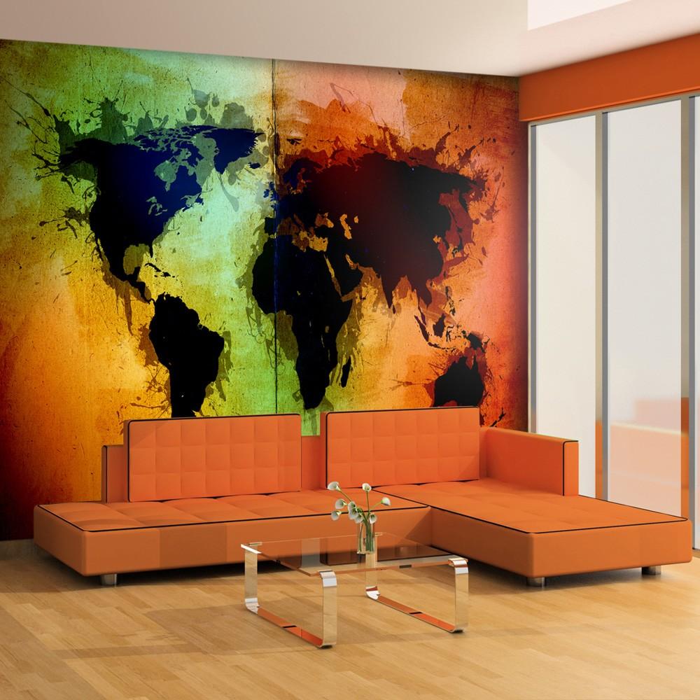 Resistant, water-rejecting and scratch-proof fleece wallpaper "Black continents, colorful oceans...". Wallpaper "Black continents, colorful oceans..." with the inspiring motive will be an effective eye-catch for each interior. Fleece wallpapers are attached to the wall with special glue. They can be installed in each room even in the bath or in the kitchen. Fleece wallpaper, halfmatte coating. 100% fleece - covers small unevenness of the wall. It creates a thermal insulation layer and allows the walls to breathe. Water resistant printing is very durable.