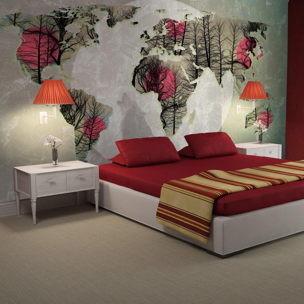 Resistant, water-rejecting and scratch-proof fleece wallpaper "Map of the World - Howling to the moon". Wallpaper "Map of the World - Howling to the moon" with the inspiring motive will be an effective eye-catch for each interior. Fleece wallpapers are attached to the wall with special glue. They can be installed in each room even in the bath or in the kitchen. Fleece wallpaper, halfmatte coating. 100% fleece - covers small unevenness of the wall. It creates a thermal insulation layer and allows the walls to breathe. Water resistant printing is very durable.